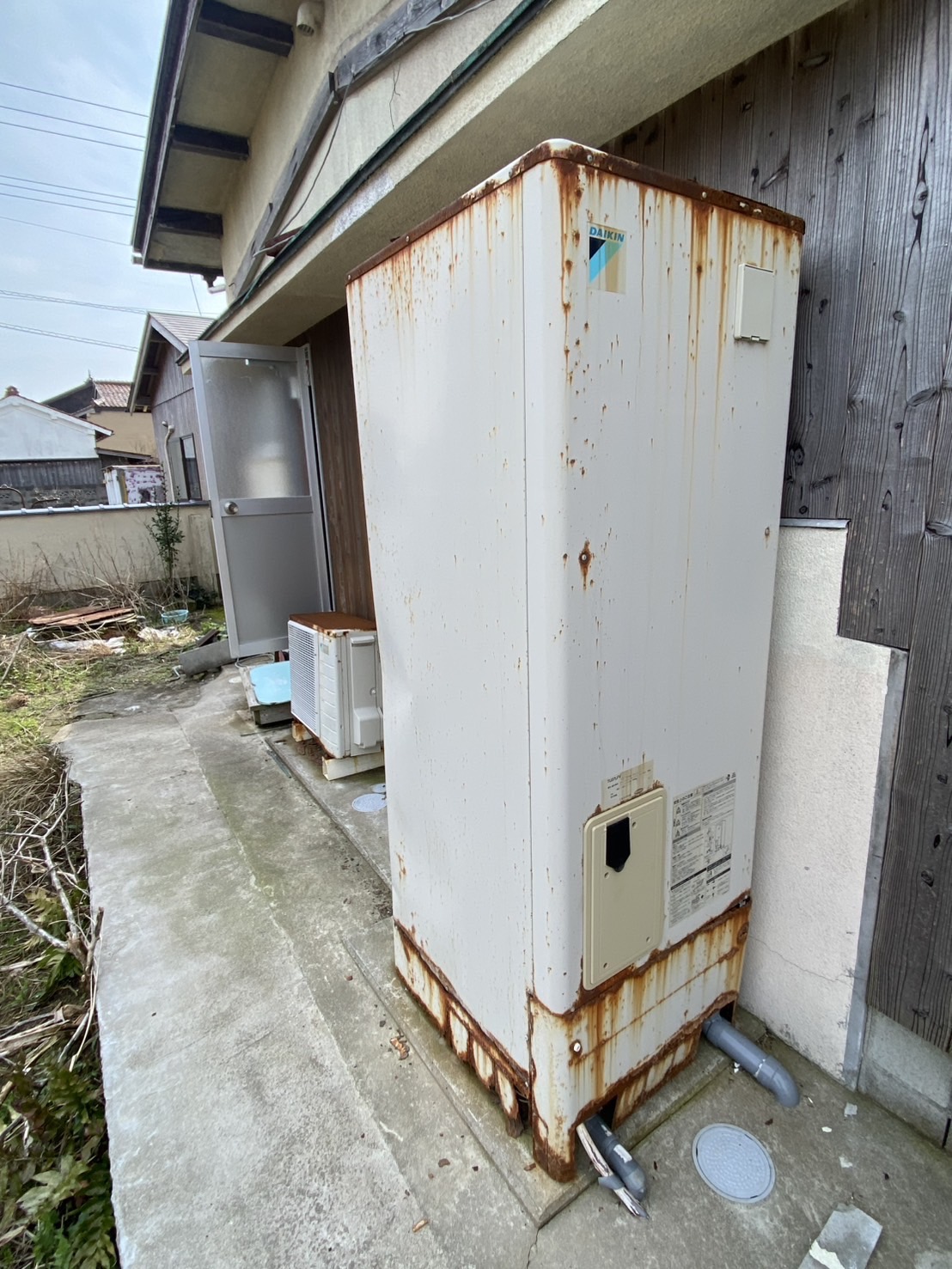 錆びもあり壊れて動かなくなったエコキュートを新しいエコキュートに交換致しました。